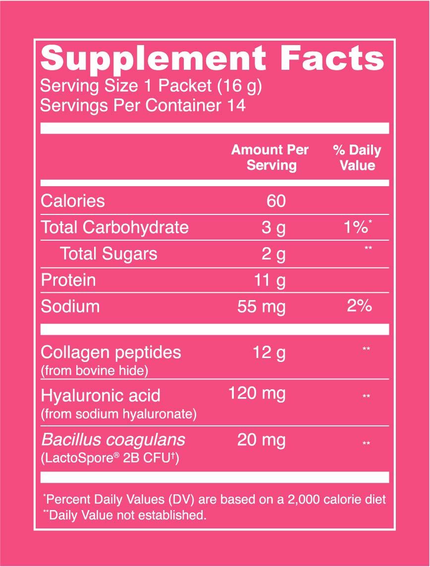 Summer is here to stay with this Beauty Collagen™ offering, a nourishing elixir for hair, skin and nails** that’s made with collagen peptides, hyaluronic acid, probiotics, organic pineapple juice powder, organic orange juice powder, organic cranberry powder and organic ginger.