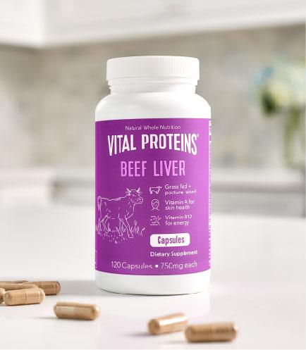 Liver is nature's most concentrated source of Vitamin A and is a vital nutrient for skin health. Vital Proteins' Beef Liver is sourced from grass-fed cows from New Zealand to ensure a natural, high quality, and sustainable source of this ancient nutritional powerhouse.