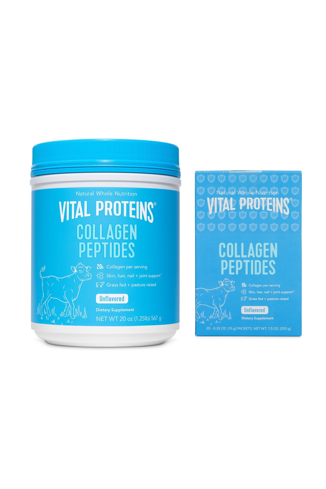 As we age, collagen production naturally slows. Give your body a natural boost with Collagen In All Things. Vital Proteins Collagen Peptides are a simple way to make sure your body is getting just what it needs. With 18 grams of bioavailable collagen per serving, Peptides can be easily blended into anything, hot or cold. Vital Proteins Collagen Peptides are sourced from grass-fed, pasture-raised bovine hides to ensure a natural, high quality, and sustainable source of this ancient nutrient. Collagen is the most abundant protein in the body ensuring the health and vitality of your skin, hair, tendon, cartilage, bones, and joints.** These natural peptides are highly bio-available, digestible and soluble in cold or hot liquids. Features:
