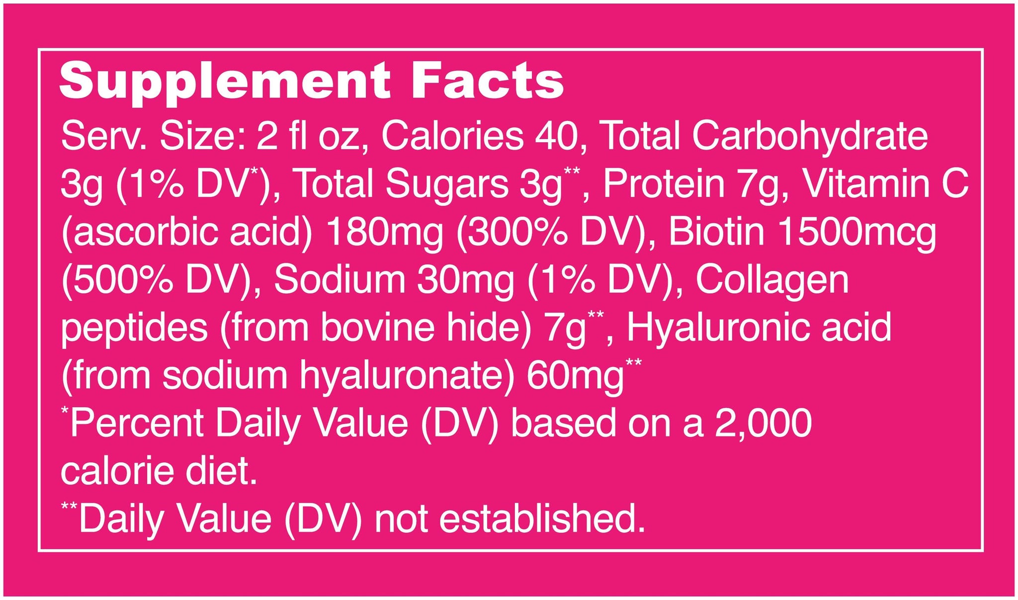 We’re all about that dew. Get a quick beauty boost anywhere, anytime with our strawberry lemon elixir touting 7g collagen peptides, 60mg of hyaluronic acid, vitamin C and biotin.