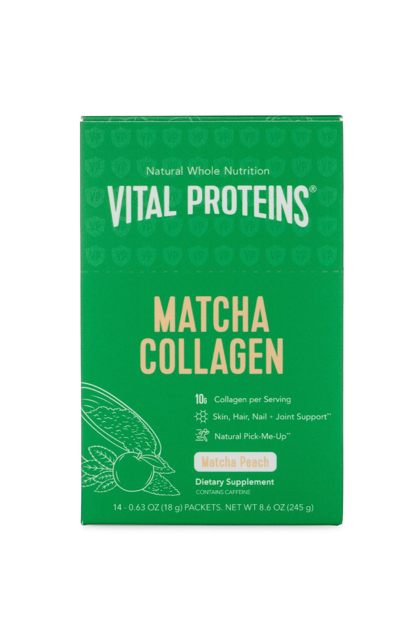 Vital Proteins Peach Matcha Collagen combines the delicious flavors of organic peach with matcha green tea and collagen for a delicious, energizing, and nutritious addition to smoothies, drinks, and recipes.