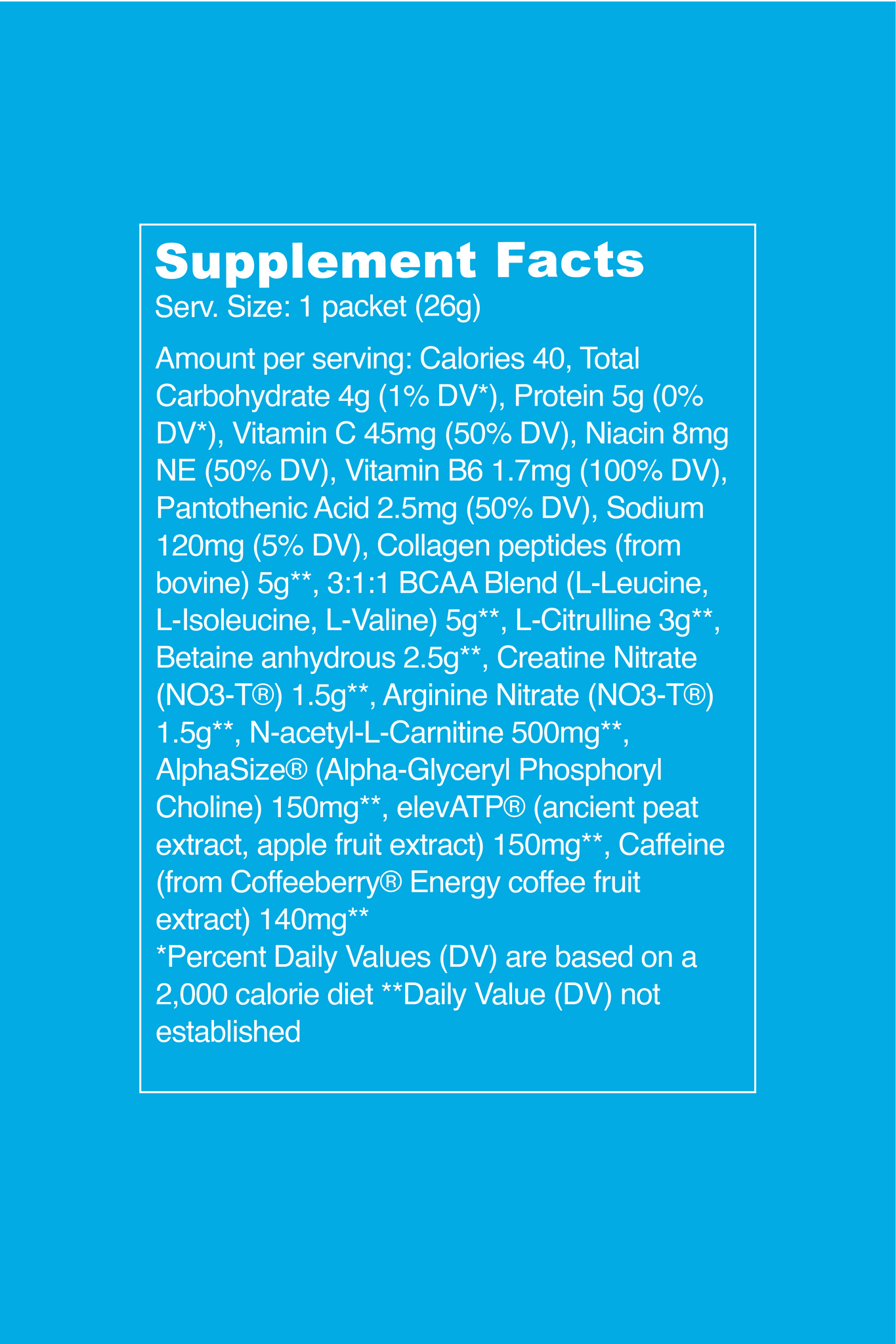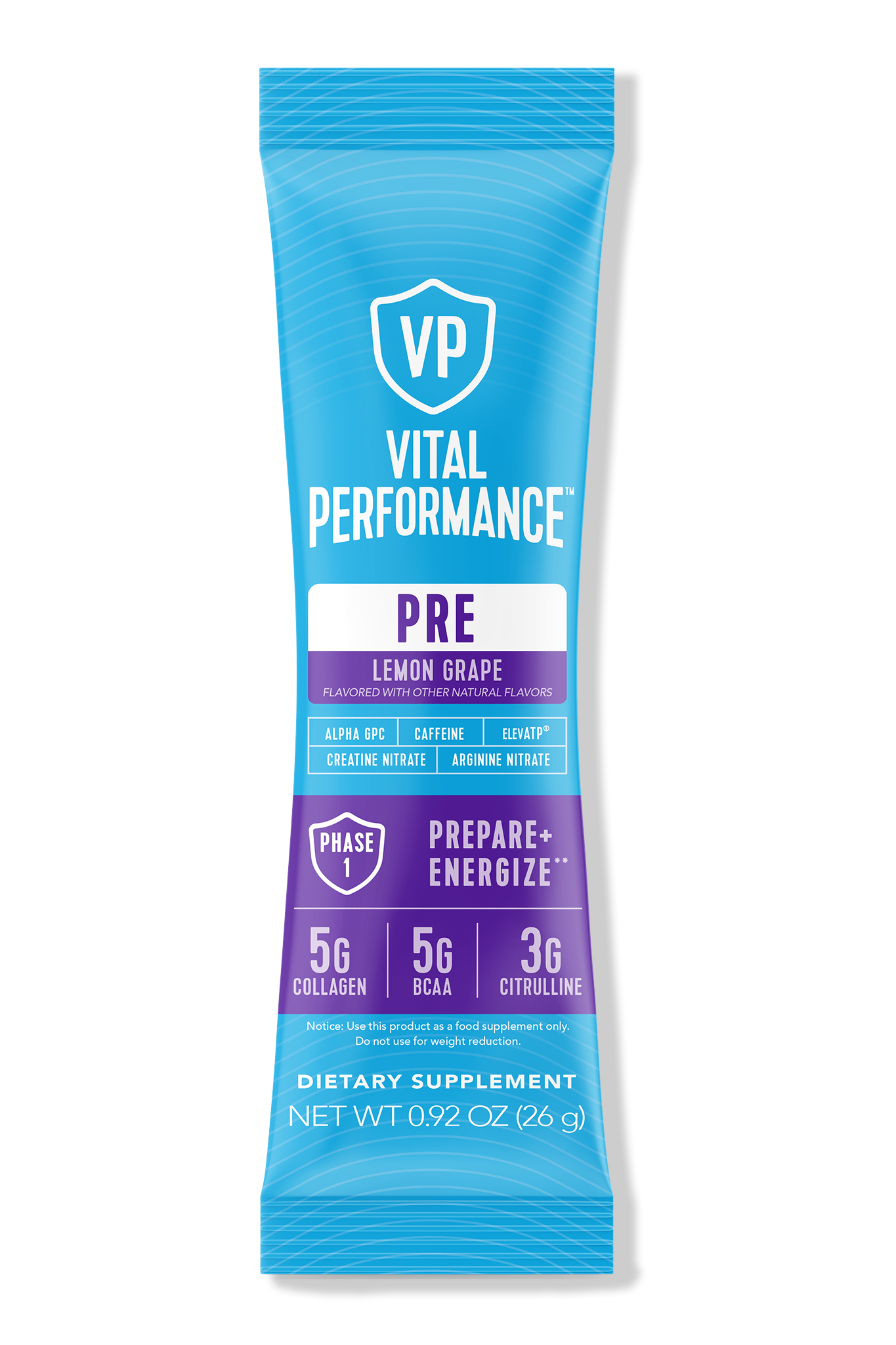 Fuel every movement with Vital Performance™ PRE, a uniquely tailored pre-workout that’s packed with functional ingredients to help you conquer larger-than-life fitness goals. Collagen Peptides and Branched-Chain Amino Acids (BCAAs) work to support muscles and joints while creatine nitrate and elevATP® support enhanced power output. Caffeine from Coffeeberry® coffee fruit extract acts as an energy booster to keep you going strong.**